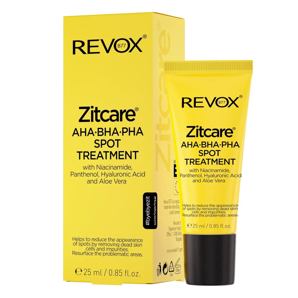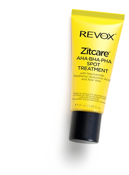 Si vous avez des imperfections ou des boutons, utilisez REVOX B77 ZITCARE AHA. BHA.PHA. Spot Treatment pour cibler ces zones. Appliquez une petite quantité du traitement localisé sur la sur la zone affectée et laissez agir toute la nuit.