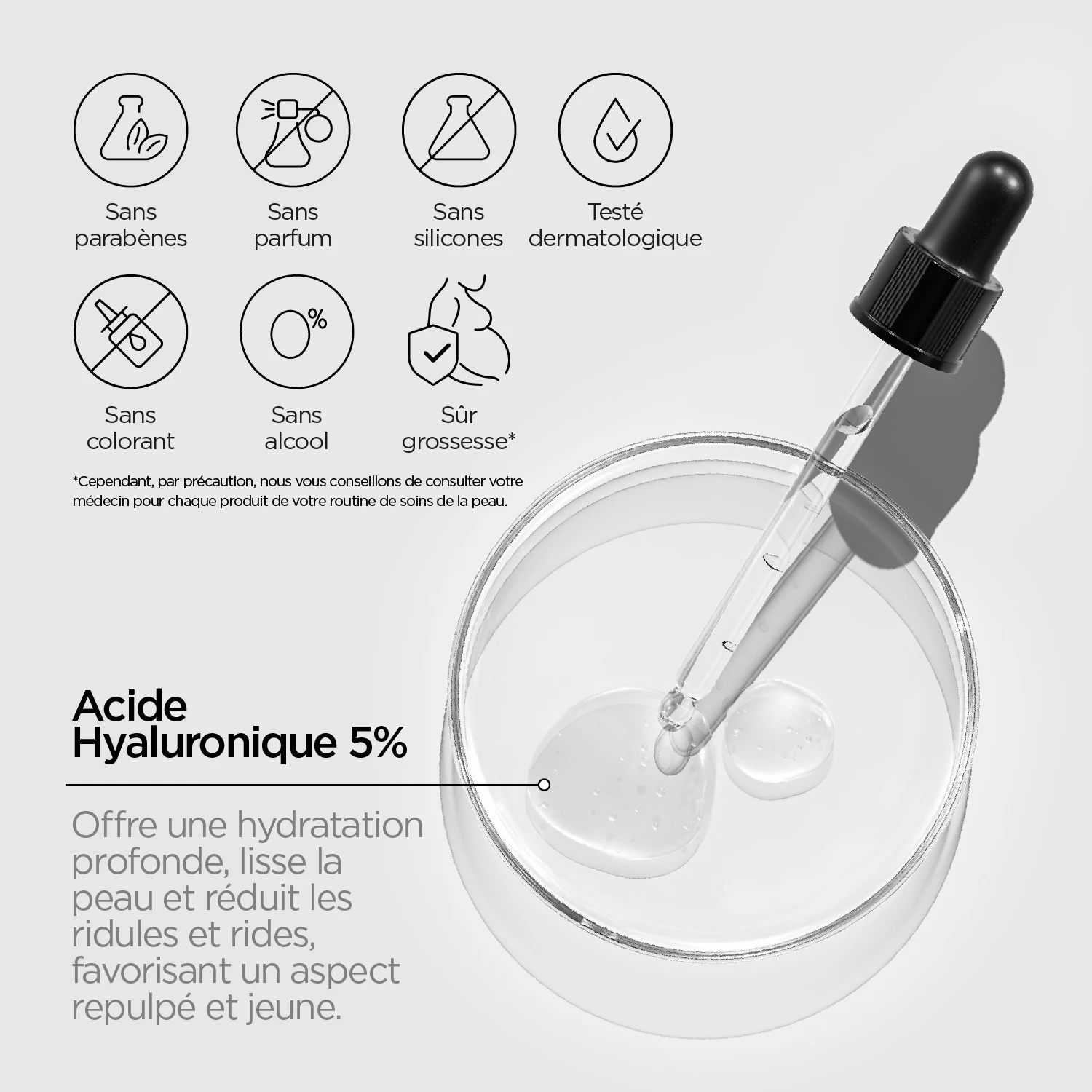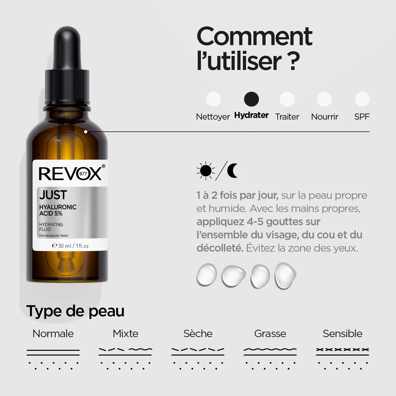 REVOX B77 JUST HYALURONIC ACID 5% est un fluide hydratant pour le visage et le cou.