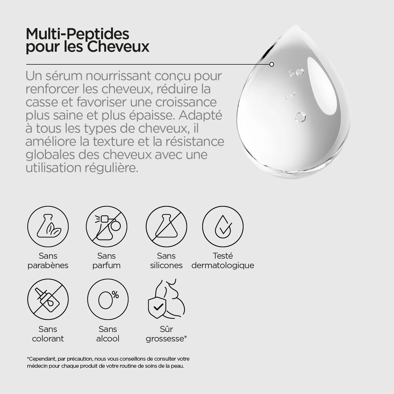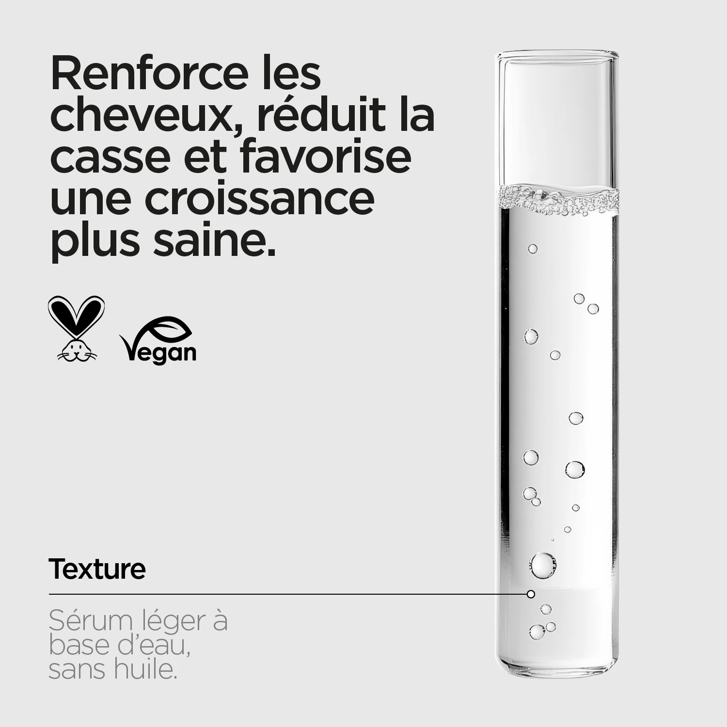 Est un sérum de densité capillaire qui tonifie et stimule les follicules, favorisant l’épaisseur des cheveux et une apparence saine. La formulation avancée avec Biotinoyl Tripeptide facilite la prolifération des kératinocytes du bulbe pileux et agit pour des cheveux plus volumineux, plus denses et plus forts. Avec la Kératrix™ Complexe riche en Oligopeptides biofonctionnels à action soutenue sur la fibre capillaire, ce sérum améliore l’état général des cheveux et du cuir chevelu. La formule légère sans silicone pénètre dans le cuir chevelu sans laisser de sensation grasse. Ce produit cible les cheveux clairsemés, ternes et sans volume et est bénéfique pour tous les types de cheveux.