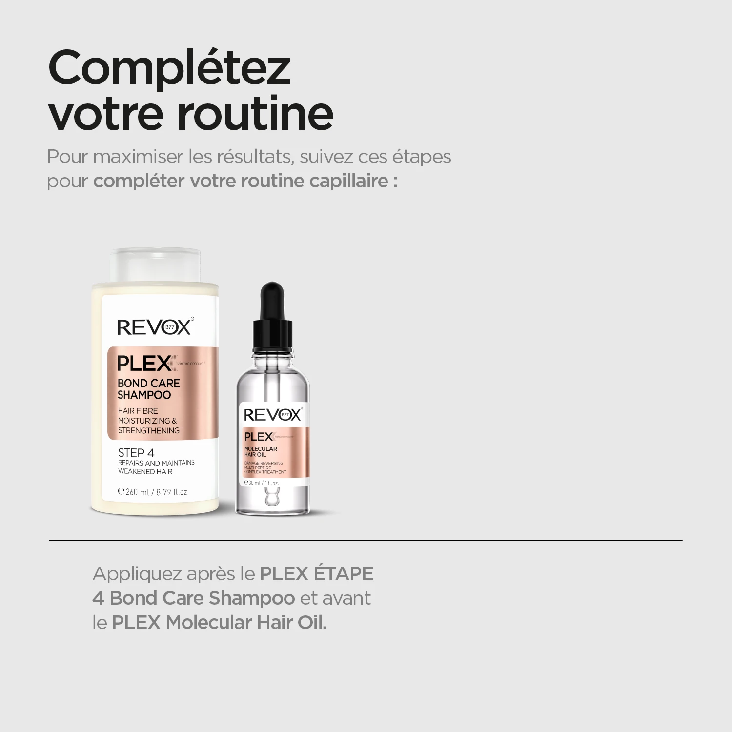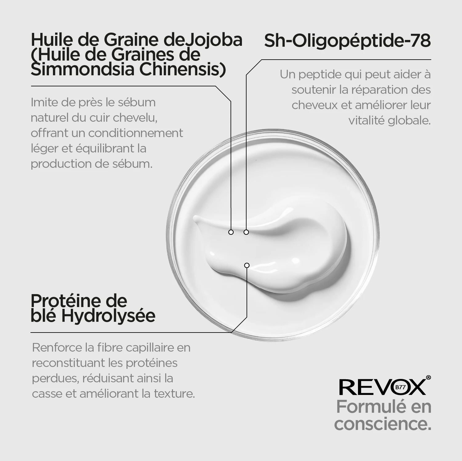 REVOX B77 PLEX MOLECULAR REPAIR MASK est une formule reconstructive innovante pour les cheveux, qui transforme l’apparence de chaque mèche, en inversant les effets des dommages. Les ingrédients puissants agissent pour réparer les liens de la kératine, qui peuvent être détruits par de nombreux processus chimiques et physiques tels que la décoloration, la teinture, le coiffage au fer et la permanente. Ce masque fournit tout ce qui est vital pour des cheveux sains, forts et brillants. La kératine et les peptides contenus dans la formule aident à lisser et à renforcer les cheveux et à les revitaliser au niveau structurel. La formule agit à l’intérieur des follicules pour reconnecter et activer les chaînes de kératine et laisser les cheveux avec une sensation de toucher soyeux. L’utilisation régulière du produit permet de retrouver la douceur et la brillance naturelles des cheveux et aide à protéger les cheveux contre les fourches.