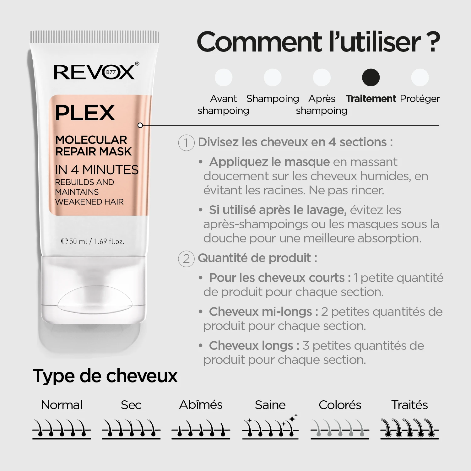 Tous types de cheveux, cheveux abîmés.